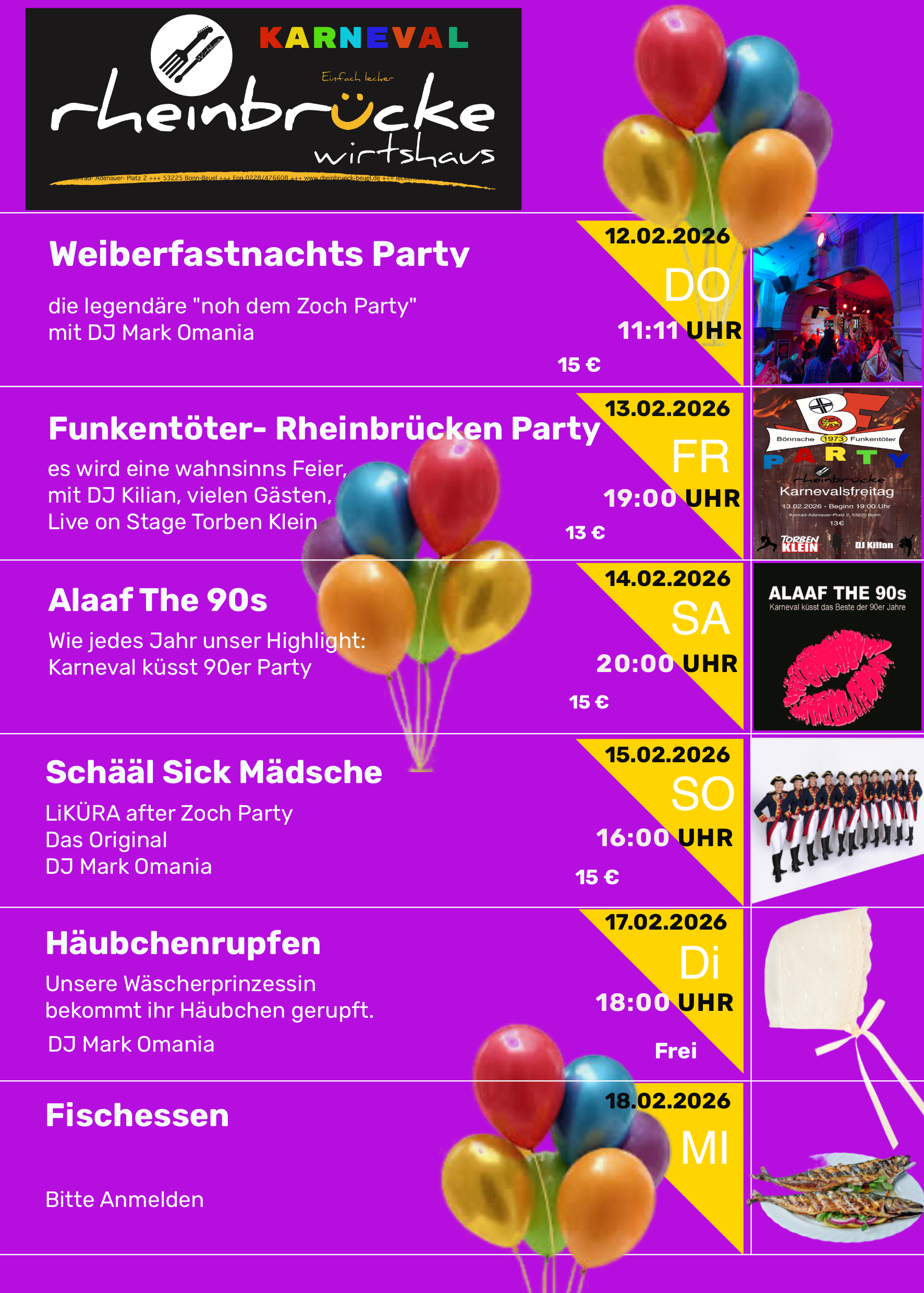 Geselligkeit und gute Laune unter netten Menschen – und das nicht nur in der Karnevalszeit. Musikalische Gastauftritte, Lesungen und Comedyabende runden das Veranstaltungsprogramm ab.