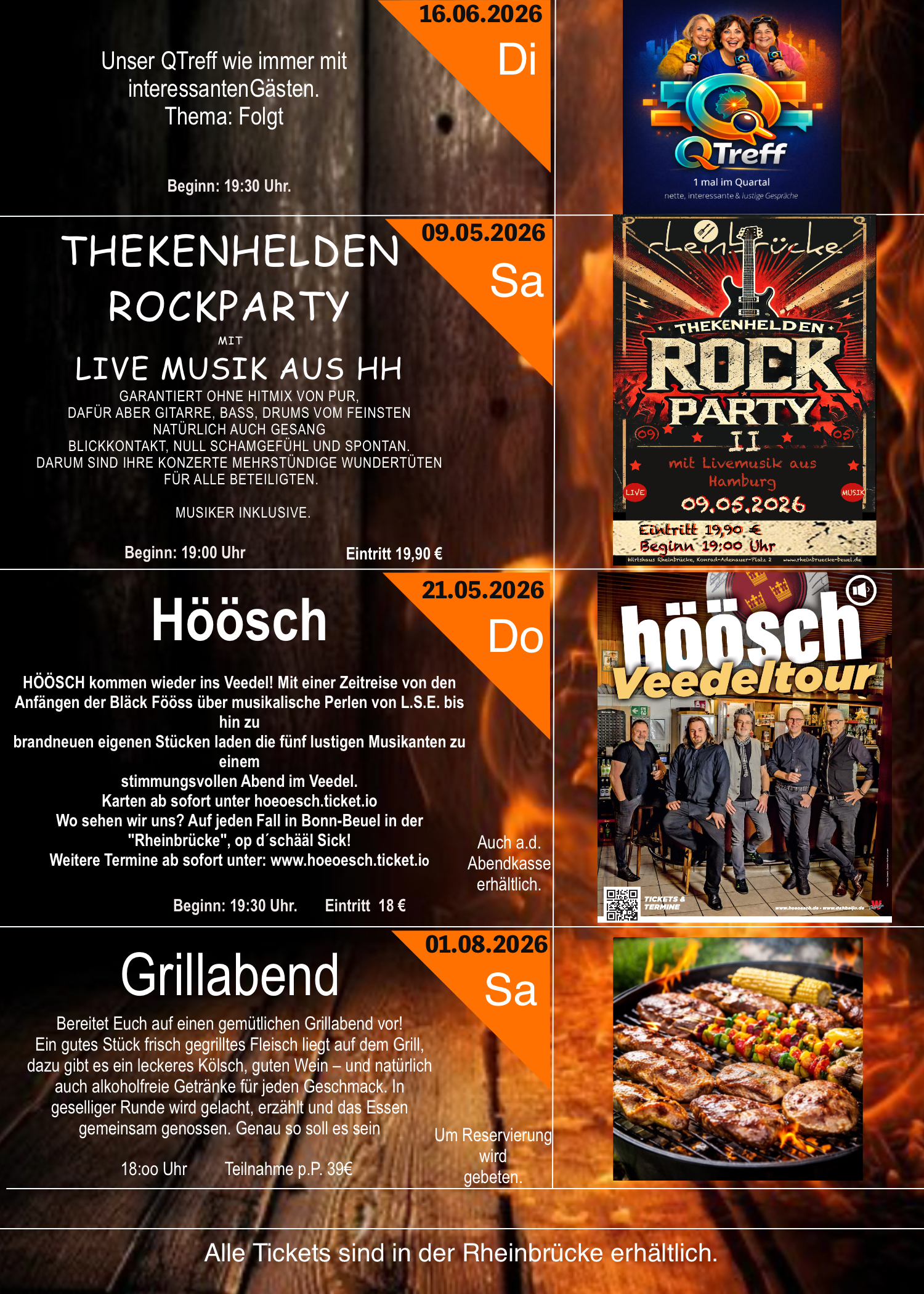 Natürlich ist es ebenso möglich die Rheinbrücke für Ihre eigene Veranstaltung zu reservieren und zu buchen. Bitte sprechen Sie uns hierzu an.